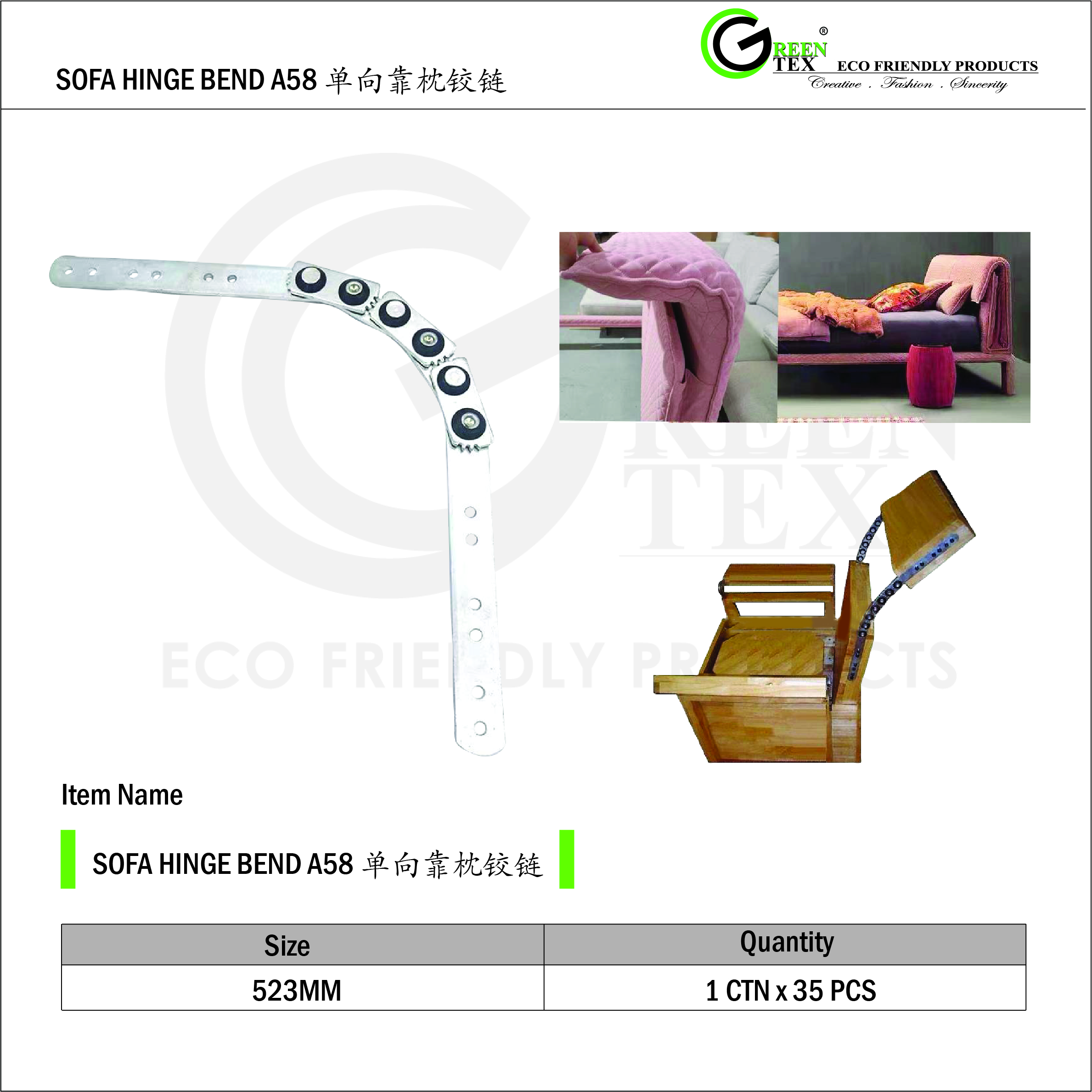 HomeUpholstery AccessoriesMechanism HardwareSOFA HINGER BEND A58 SOFA HINGER BEND A58 SIZE: 523MM QUANTITY: 1 CTN X 35 PCS Request a Quote SKU: SOFA HINGER 26CM-1 Category: Mechanism Hardware Product ID: 28049 Related products SOFA HINGER 26CM ALLOY HEADREST V-SHAPE RECLINER FRAME – SINGLE SEAT
